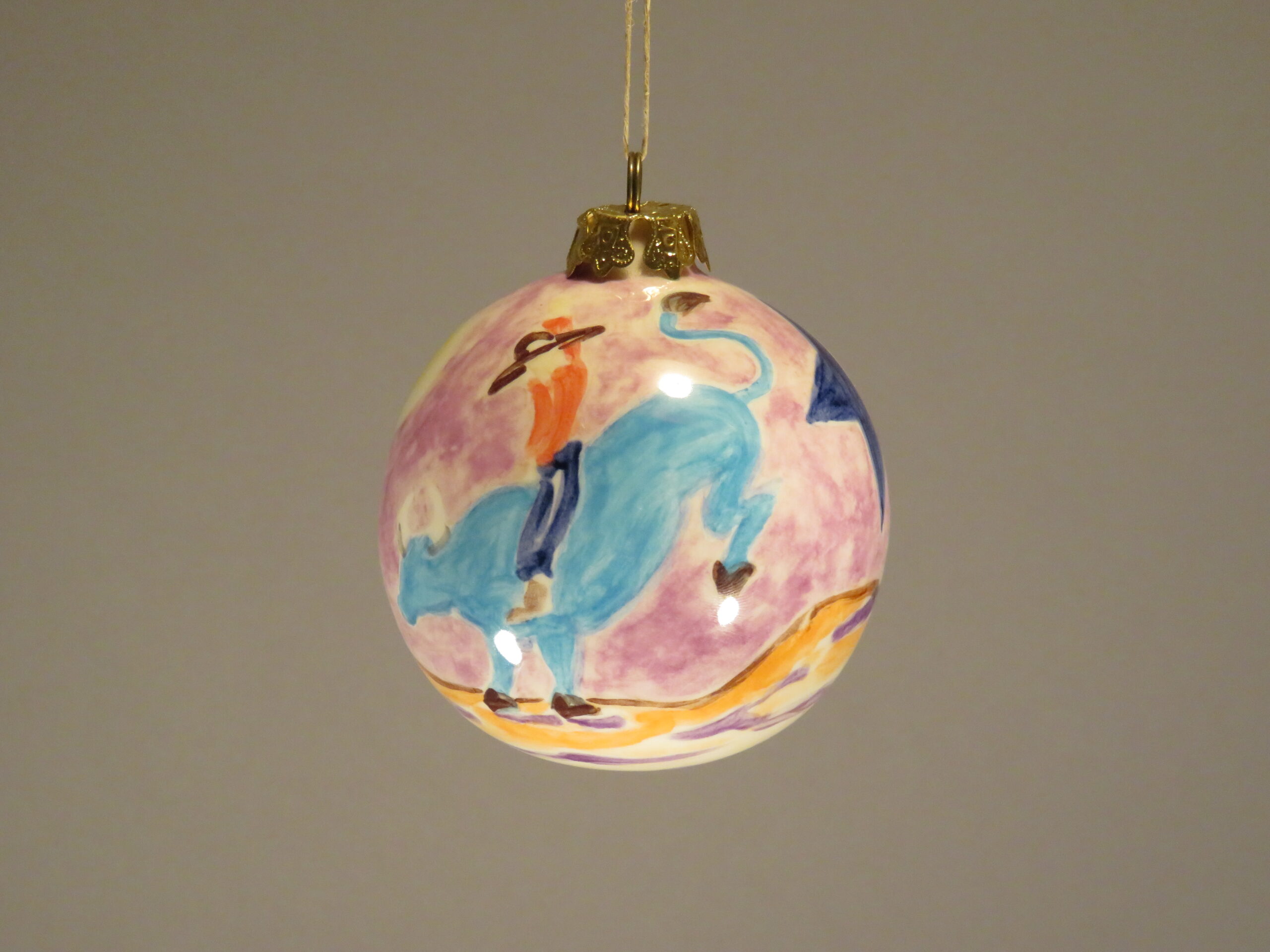 This is a made to order hand painted porcelain bulb with a Star of Texas and Cowboy on a Blue Bull. 3 1/2″ in diameter. Painted by artist Stanley Olivarez. All made to order items usually ship between 4-8 weeks after purchase of product.